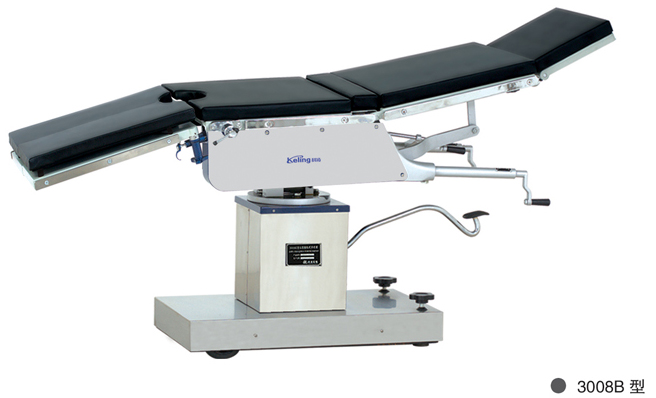 3008系列手术床属综合多功能型,适用于医疗单位施行各种手术所有动作均在头部控制 进口Y型密封圈,双保险无漏油现象。, 备有刹车装置,方便手术床移位。 所有动作均在头部操纵。 支肩架/支腰架一付、搁臂架一付、托腿架一付、屏风架一个。
